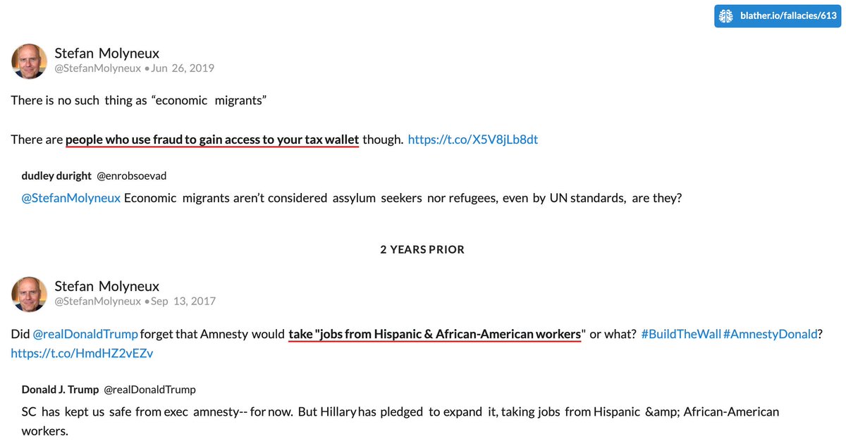No, Stefan. You have to pick one already. They can't be coming here to collect welfare benefits while also coming here to steal Americans' jobs.