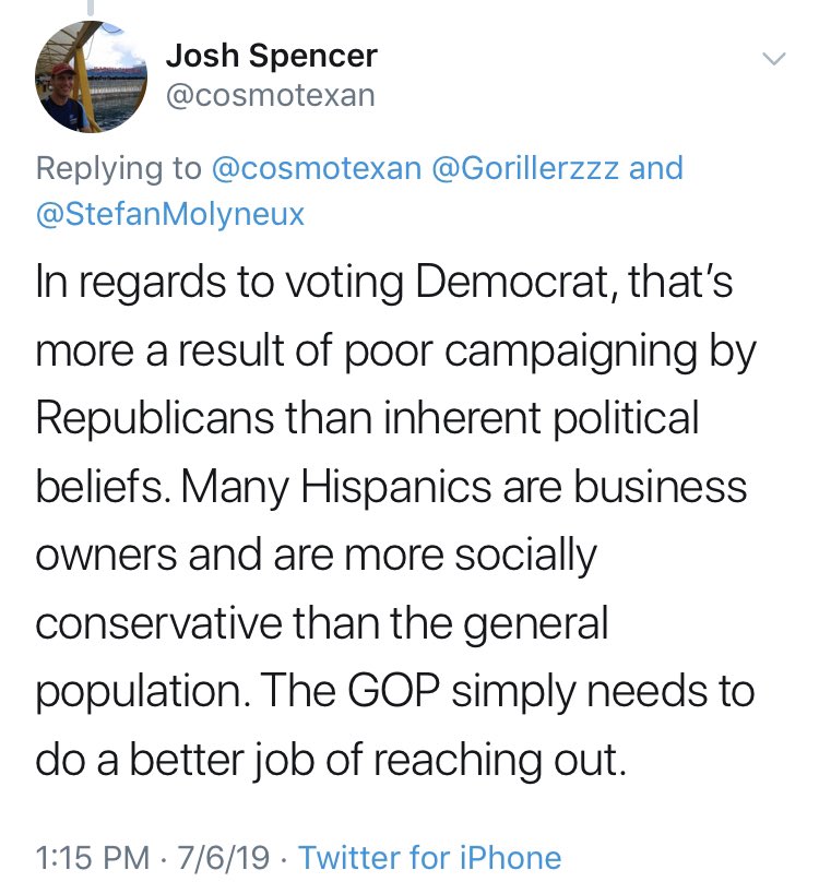 Unfortunately this is true & there's little to no thought behind the reasoning. Independent & Republican Hispanics are endlessly frustrated.