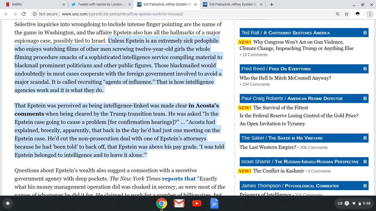 If Epstein got skate prosecution 1st time, why wouldn't he be saved 2nd time 'IF', and he had dead man files, control files, over the most extreme power people in USA? Epstein said, suicide & heart attach. Well chemicals can slow heart. Perhaps he needs a 2nd autopsy right now.