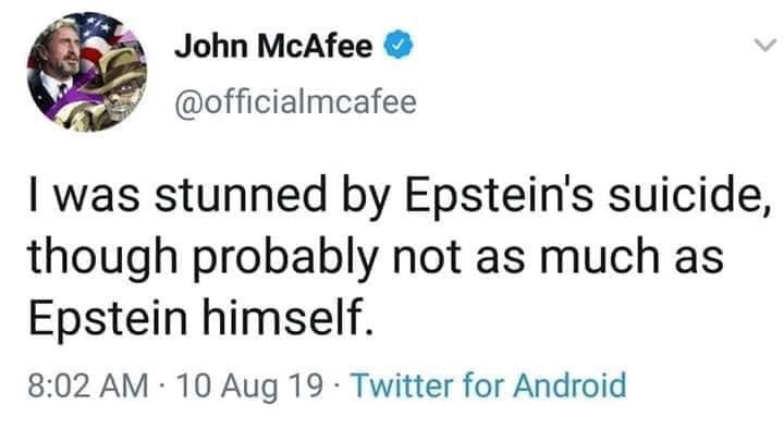 Almost no one was surprised by Jeffrey Epstein's death. Perhaps most especially Jeffrey Epstein. He knew who he was in bed with. (Pardon the pun - it isn't funny, but that's really what it amounts to)