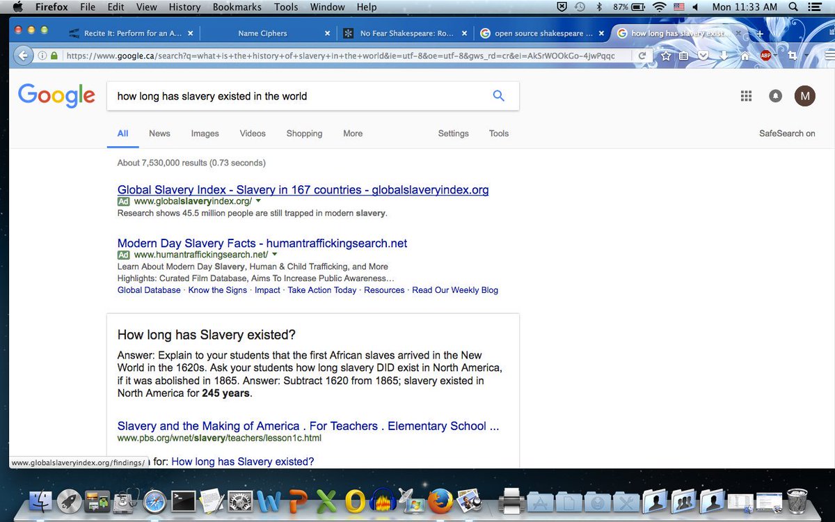 Google is complicit in spreading misinformation. When I tried to find out about the history of slavery IN THE WORLD. Google directed me (and my "students") to do some math to find out slavery existed in the US for 245 years -- as if that was what I asked!