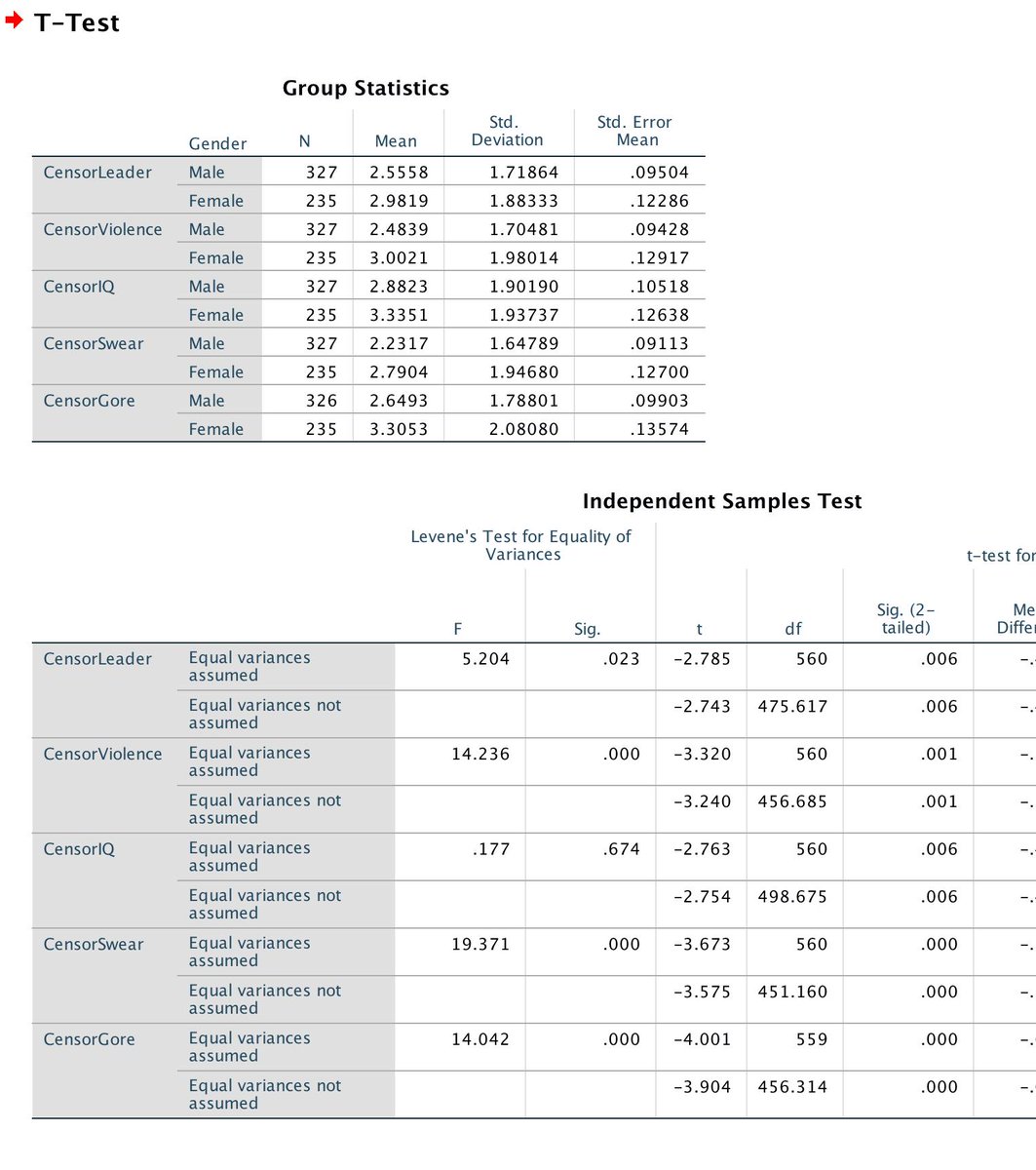 I just quickly analyzed my 'support for censorship' data by gender, and indeed, yes, women consistently are more supportive of censorship than men. The questions/topics these data correspond to are described in this paper: https://www.researchgate.net/publication/333677484_The_Ideology_of_Censorship …pic.twitter.com/aGFKPRRPc6