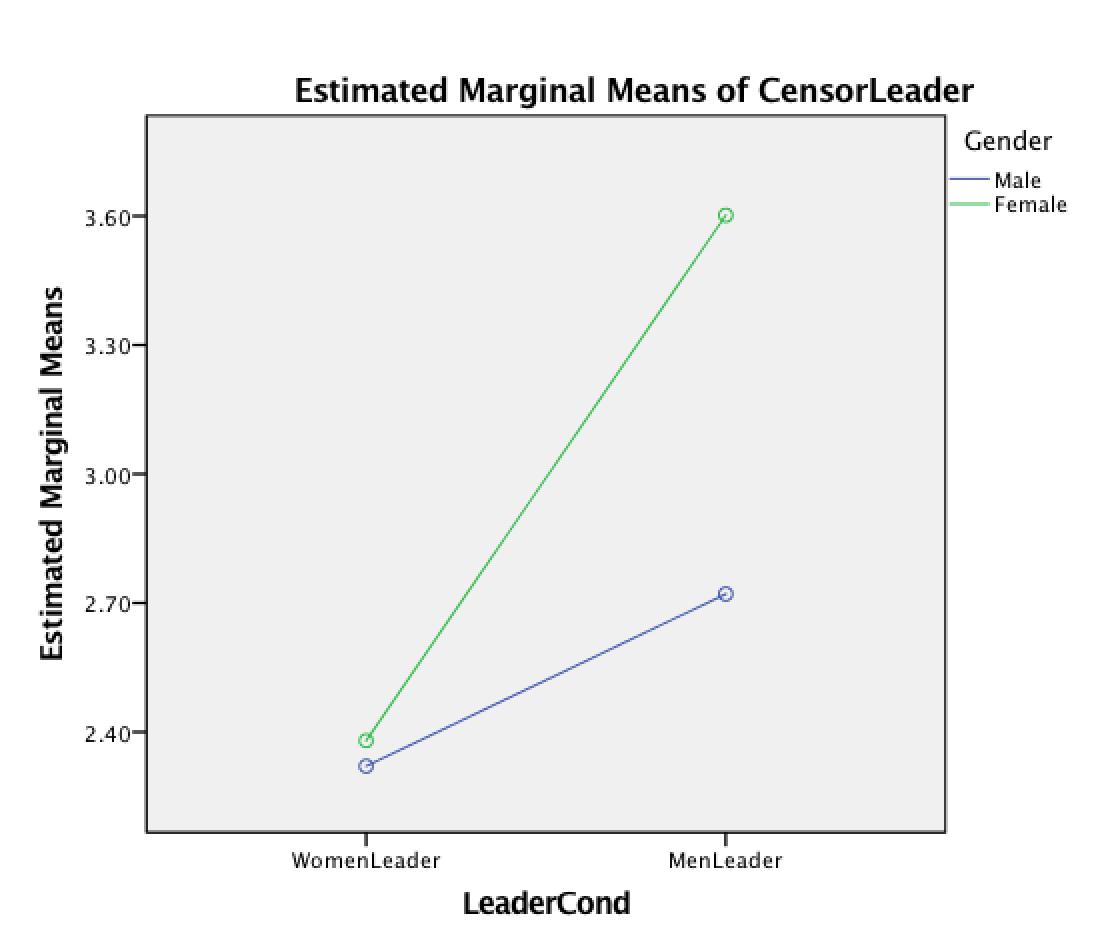 Just checked for interactions and actually, women are more supportive of censorship for every topic and every condition *except* for the "women evolved to be better leaders than men" condition for the Leadership topic. Thanks for these analyses suggestions :) Very interesting!pic.twitter.com/Kxf6joCihd