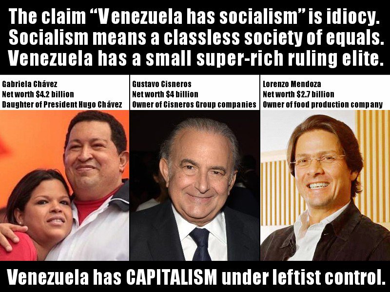Venezuela has a leftist state-run profit-driven CAPITALIST economy. NOT socialism (class-free society with NO ruling elite).pic.twitter.com/Od1alMiIRs