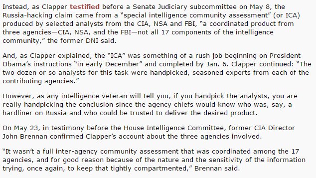 it wasn't actually 3 agencies as a whole, it was hand picked people from those 3 agencies, according to Clapper.pic.twitter.com/llVBdhHxGa