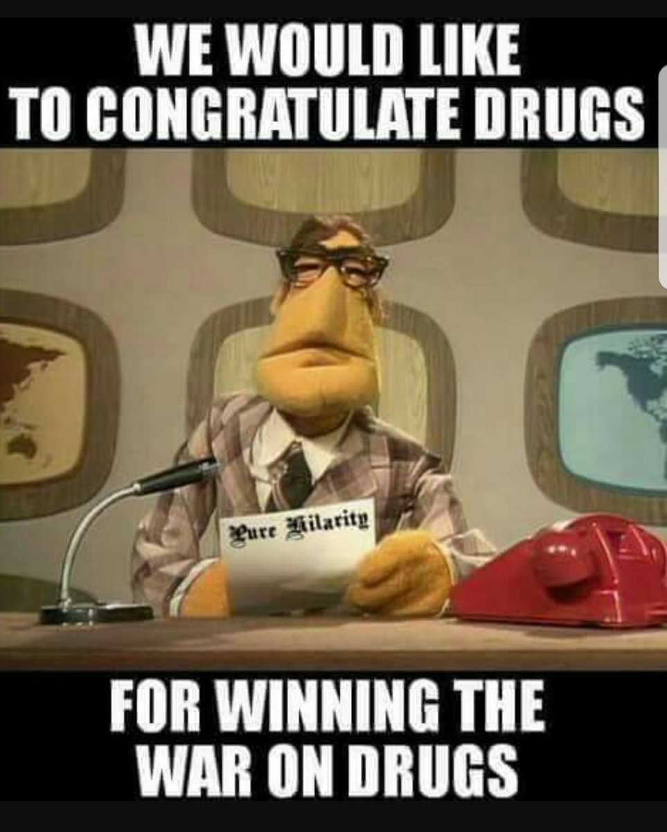 Oh. To answer, we have not won the drug war because half measures are ineffective. That and the natural rebellious nature of mankind.