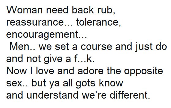 Men, as a woman, please accept my apologies. Thank you for your service, your maleness, your protection, your honor. #NotAFeminist