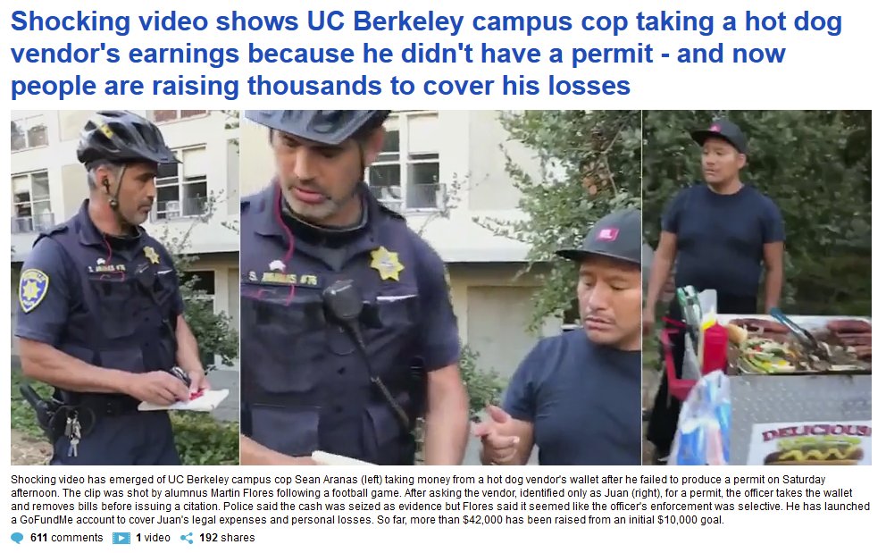 An advice to hot dog vendor: Wear a black outfit and mask and UC Berkeley cops will leave you alone.