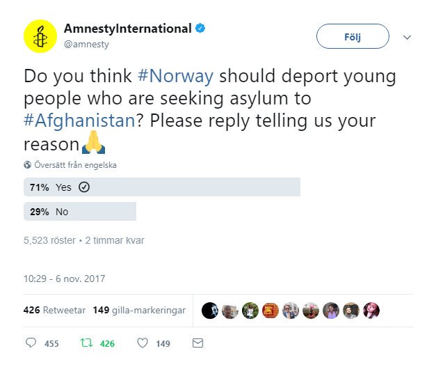 @amnesty - if you launch a poll, you stand by it's results. Even if they don't fit your agenda. And yes, young '#refugees' need to go back, all of them.#Eritrea,#Afghanistan, we don't care. They need to rebuild their f*cked-up country. -
