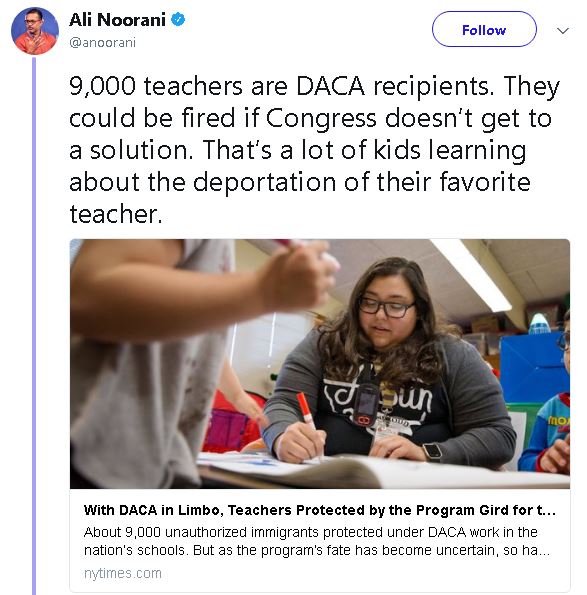 DACA Teachers teach DACA children. It is important to keep them together, on both sides of the border. Having their favorite teacher along will be very comforting and make it easier to set up schools/classrooms back in Mexico. Sending their teachers along really is most humane.