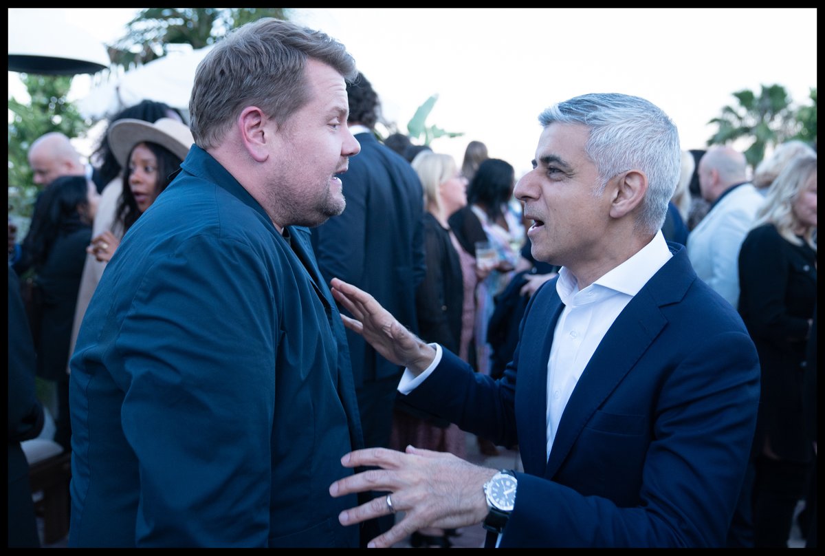 @MayorofLondon@SadiqKhan chats with TV host James Corden at a reception in Hollywood for the creative industries. By Stefan Rousseau/PApic.twitter.com/ylW0EmG215
