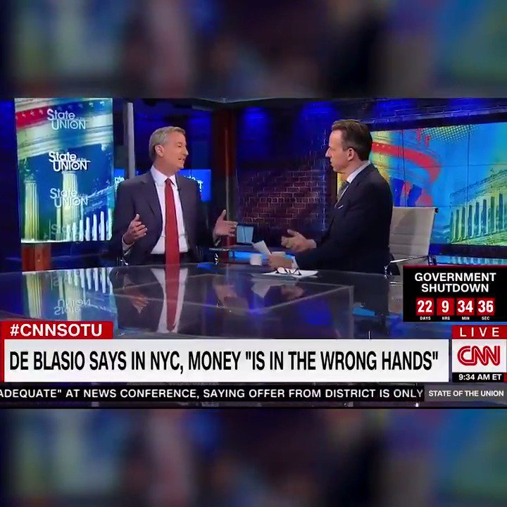 Tapper showing his colors. Right after BdB references policies designed to shift the money to different hands, Tapper then asks “But who decides who gets the money?” BdB just said that one party decided who gets the money!