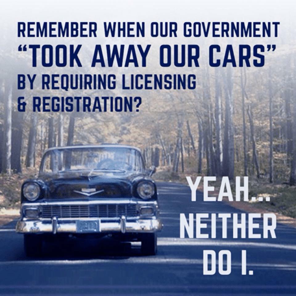 I'm not taking a side or even staying my beliefs but I think we all know he was making a joke yet making a pretty good point in the process. He never implies that driving is an amendment right so don't add or inflict false ideas into a debate on either sides issues.