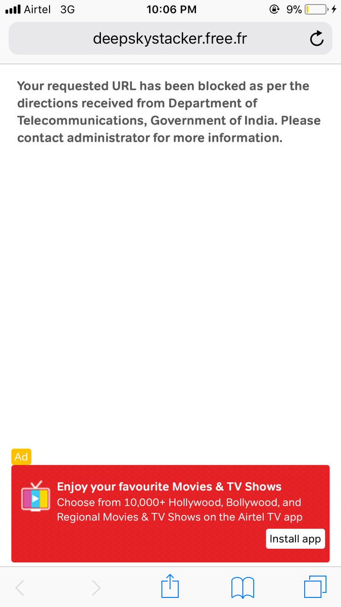 @MIB_India@TRAI Why is this site blocked in India? It’s an astronomy related free software http://site.pl open itpic.twitter.com/FPfGRCfVtw