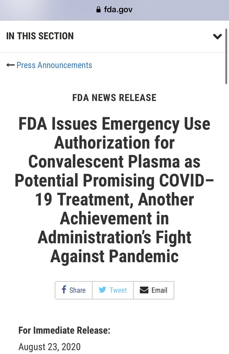 I have been criticized for remarks I made Sunday night about the benefits of convalescent plasma. The criticism is entirely justified. What I should have said better is that the data show a relative risk reduction not an absolute risk reduction.
