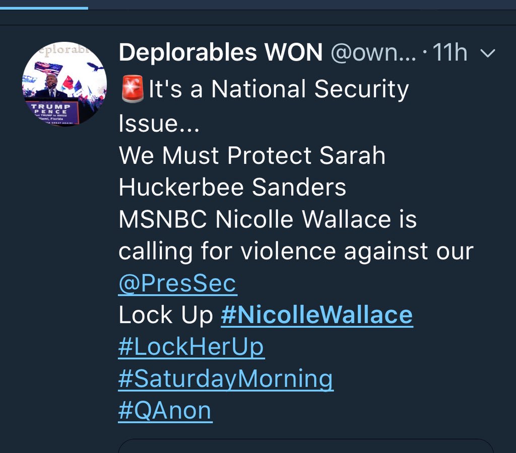 1. It’s important to understand the deliberateness of the misinformation campaign being waged against Nicolle Wallace by Trump media after she used a common and benign idiom to express her dismay around the venality of Sarah Sanders responses to ?’s about this disgraceful WH