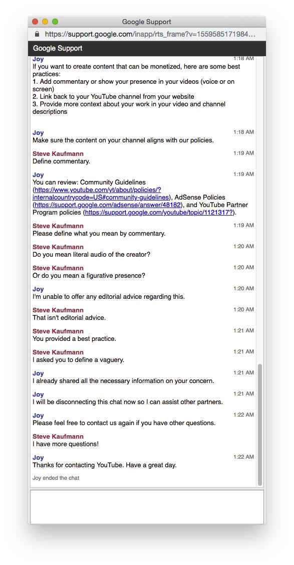 So this is Joy from June 11th refusing to define the word commentary and throwing me out of the chat!pic.twitter.com/fRb6DzzkG0
