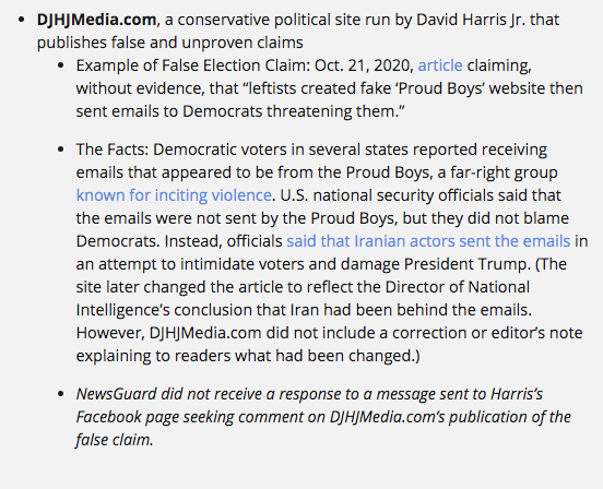 All the identified sites have published false info about voting, the election, and ballot counting.https://www.newsguardtech.com/election-misinformation-tracker/ …Thanks. Twitter will use this to make your timeline better. UndoUndo -