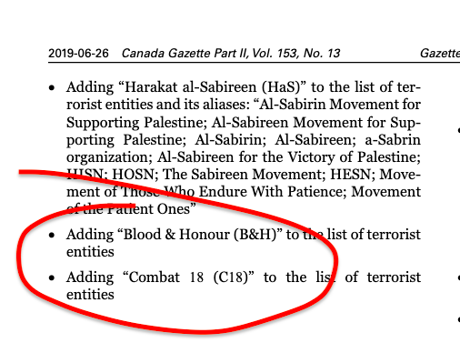 5. The gvt has now acknowledged the listing in this statement.https://www.newswire.ca/news-releases/government-of-canada-announces-initiatives-to-address-violent-extremist-and-terrorist-content-online-866683647.html …