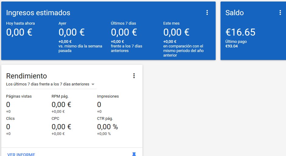 El problema es desde Adsense, siempre pone que mis ingresos son 0 y no entiendo el porque, Me podeis hablar por MD?