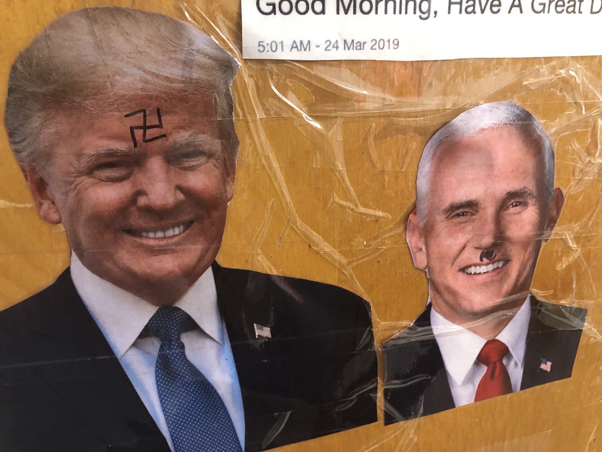 Someone drew a swastika over a Trump decoration and put a Hitler mustache over a Pence decoration on a Jewish student's door at GWU. Disgustinghttps://jewishjournal.com/news/nation/310208/swastika-found-on-gwu-jewish-students-door/ …