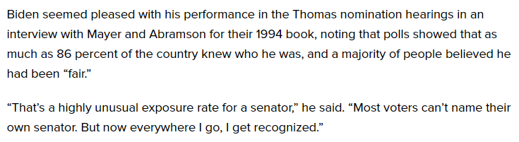 Joe Biden thought the Anita Hill hearings were a huge success. Why? Because they bought him high name recognition