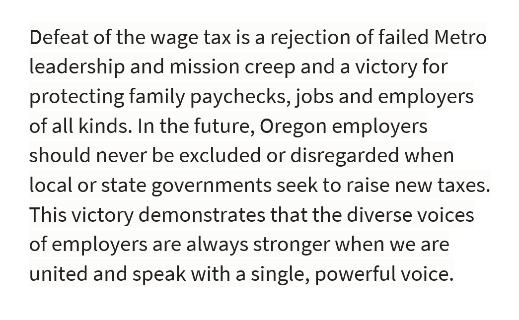 Metro's permanent wage tax will be applied outside the Metro region, can be raised and applied more broadly without a vote of the people, and will tax more than wages. Metro's track record does not inspire trust with local biz leaders. Vote No on 26-218. http://ow.ly/ewld50BYUb2 pic.twitter.com/az25Xeejfh