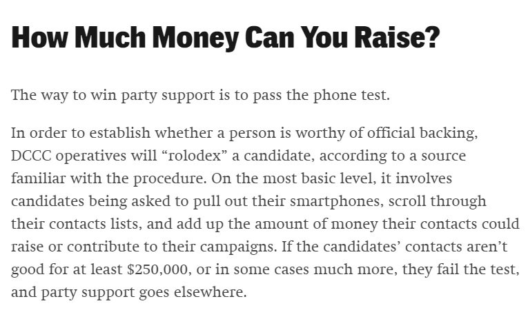 is what's wrong with our political system. It's all about money. They don't care who the best candidate is. They don't care if their policies are good for "we the people". All they care about is who can raise the most money. https://theintercept.com/2018/01/23/dccc-democratic-primaries-congress-progressives/ …pic.twitter.com/nPFOIJCSRw