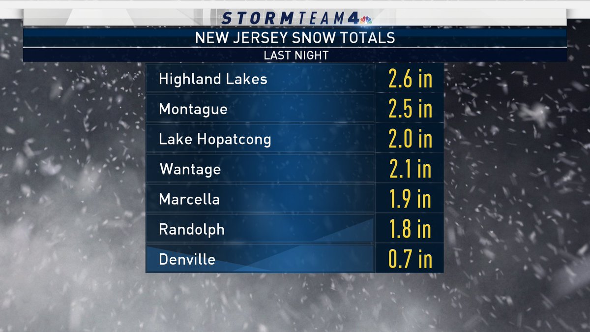 Latest snowfall totals reported overnight across parts of northwestern New Jersey...