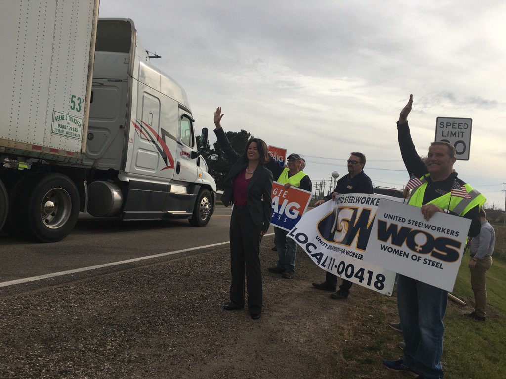 Amid a sprint around #mn02, @AngieCraigMN hits a shift change at a plant in Cottage Grovepic.twitter.com/TQFnDR531e