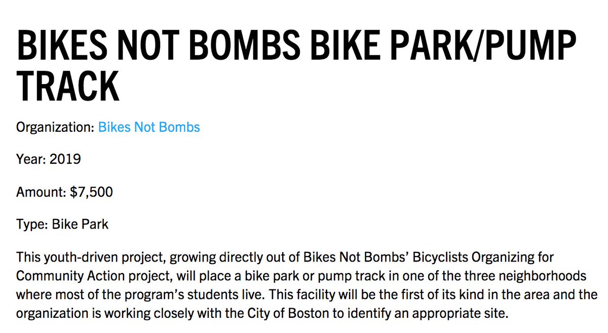 @bikesnotbombs is a recipient of a@people4bikesorg community grant to build out a pump track / bike park in the city! https://www.bicycleretailer.com/announcements/2020/01/24/peopleforbikes-announces-community-grant-recipients#.XiuTEFNKg1J …pic.twitter.com/UFjqE3Id3y