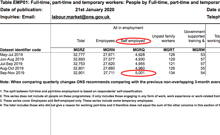 Round-number labour market news has been a bit thin on the ground for some time, so a big cheer for today's figures which show self-employment finally hitting 5 million ...pic.twitter.com/U3T9uuAR5i