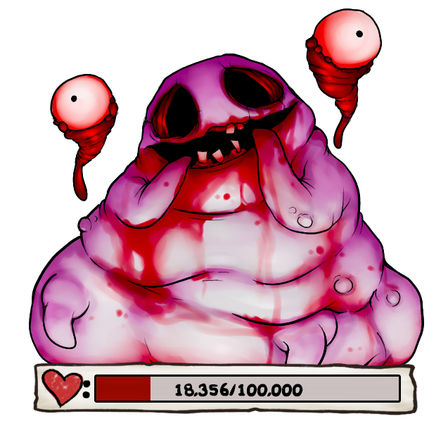 YOU GUYS HAVE DONE SO MUCH DAMAGE HES FLASHING PINK! (just imagine the flashing). we are close close peoples! spread the word, raise your pledge & get more backers on board so we can unlock the void tonight! http://thefoursouls.com RT=shoot 2 tears, every $1 we make shoots a tearpic.twitter.com/nPBePcQJAQ