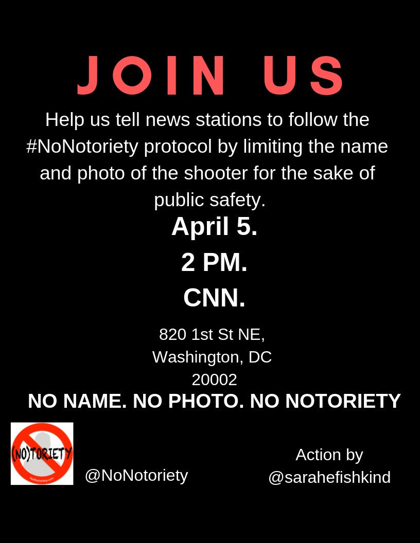 Hi everyone! We are a group of students trying to push news stations to take the #NoNotoriety protocol and promise to minimize the name and face of the shooter after these horrific tragedies occur. We must honor the victims.