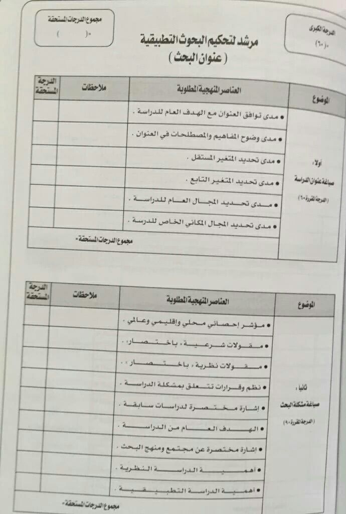مرشد لتحكيم البحوث يستخدم في نقد البحوث العلمية