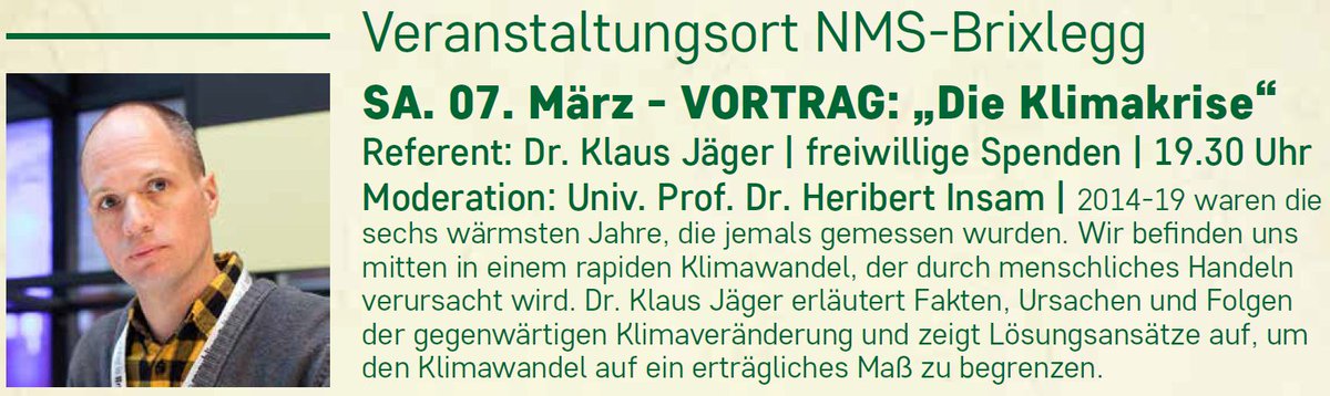 #Klimakrise in#Brixlegg in#Tirol. Kommt zahlreich! Der Vortrag ist im Rahmen des "Grüner Kultur März" und wird organisiert von Die Grünen Brixlegg.@gruenetirolpic.twitter.com/vSMZr9QLdZ