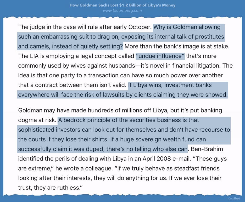 When sophisticated bankers meet clueless sovereign wealth funds,lawyers make merry! A+ read on Libya & Goldman Sachs https://www.bloomberg.com/features/2016-goldman-sachs-libya/ …pic.twitter.com/MVy2T2ZZtH