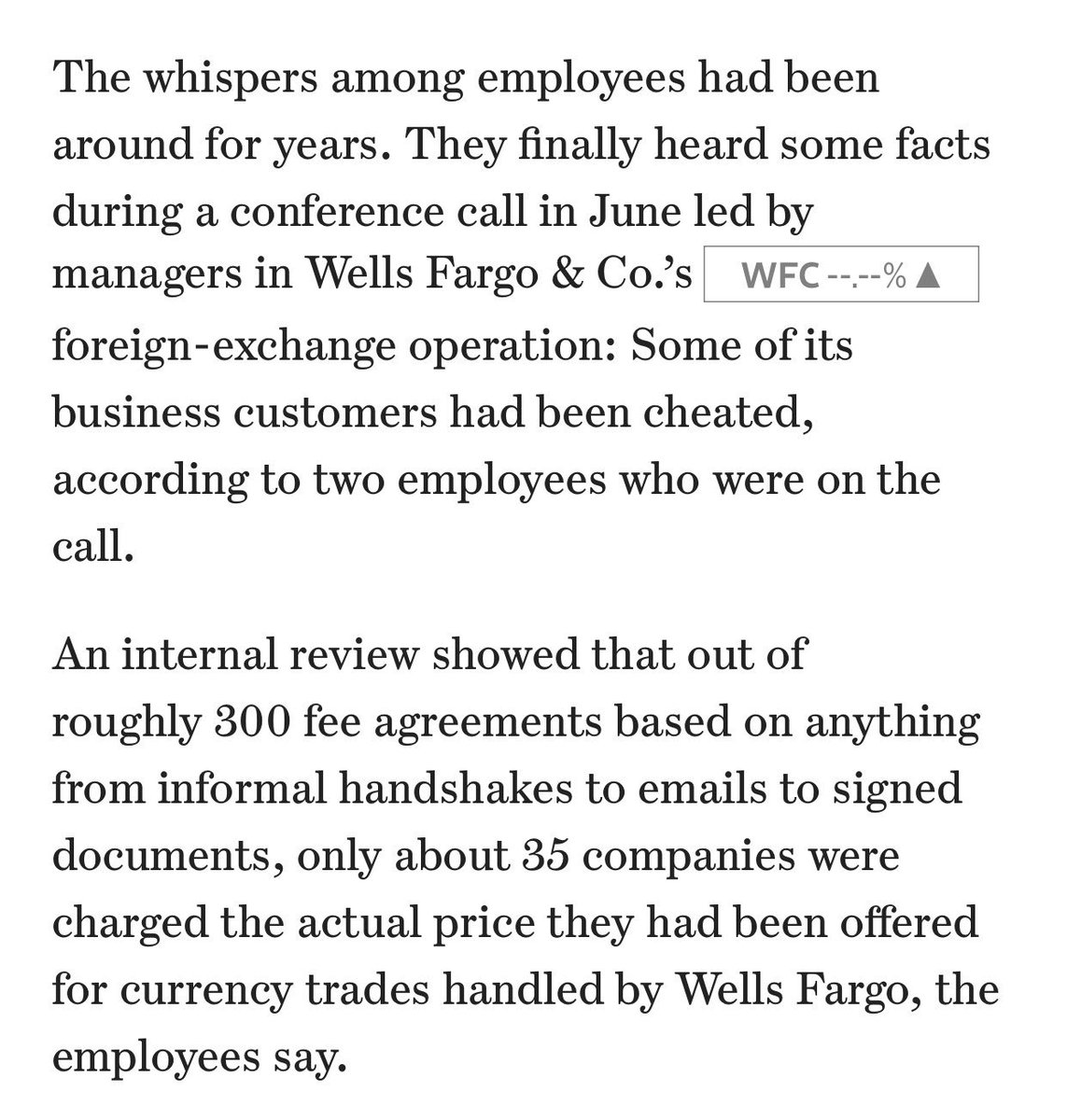 Reason #47483 why customers, be they retail or corporate, don't trust large financial institutions. https://www.wsj.com/articles/wells-fargo-bankers-chasing-bonuses-overcharged-hundreds-of-clients-1511830230 …pic.twitter.com/Fn4Vb1CZqp