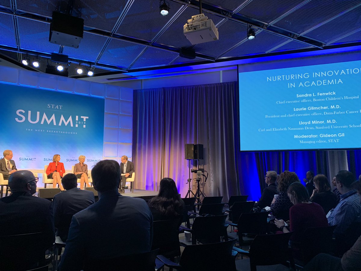 @GideonGil about how academia can work with industry, with Lloyd Minor@StanfordMed highlighting the Apple Watch study that recently came out in@NEJM — and@LGlimcherMD talking about@NobelPrize winner Bill Kaelin as example of ideal work.#STATSummitpic.twitter.com/KdXClUcdSX