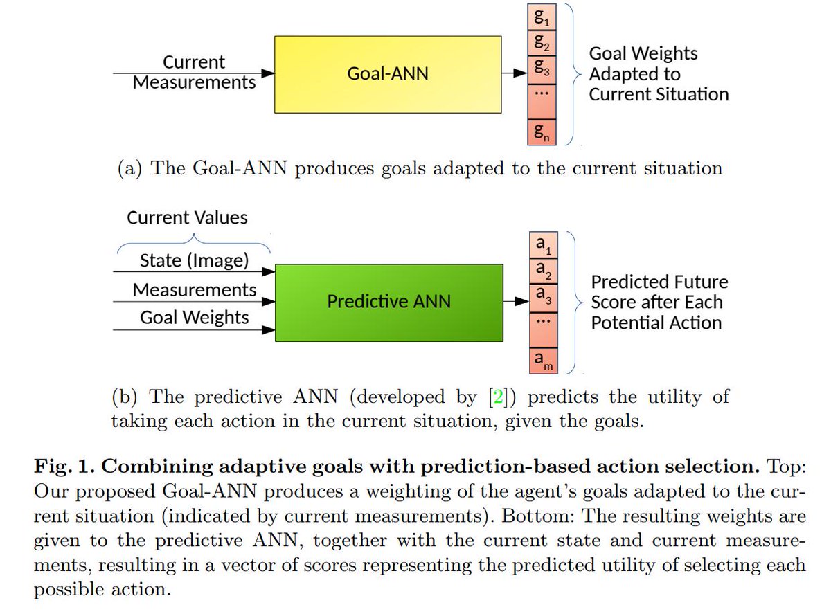 I'm excited to share our new preprint out on arXiv today. We combine a deep neural network that predicts the future with a small, evolving network that adapts the agent's goals. Those adaptive goals are able to transfer the predictive model to new tasks. https://arxiv.org/abs/1904.02435 pic.twitter.com/4GORho0GQx