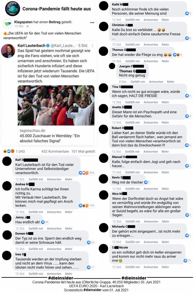 Die Drohungen und Beleidigungen lassen nicht nach. Kein Wunder, dass Wissenschaftler zum Teil den öffentlichen Auftritt meiden. Schön ist das für niemanden.https://twitter.com/Die_Insider/status/1410528144050769927 …