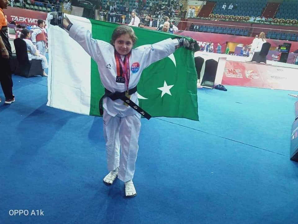 عالمی تائیکوانڈو مقابلوں میں سوات کی 9 سالہ عائشہ آیاز نے پاکستان کے لئے واحد گولڈ میڈل جیت لیا- مجموعی طور پر پاکستان نے 6 میڈلز حاصل کئیے، واحد گولڈ میڈل عائشہ آیاز نے پاکستان کے نام کر لیا-pic.twitter.com/baZJZRv1br