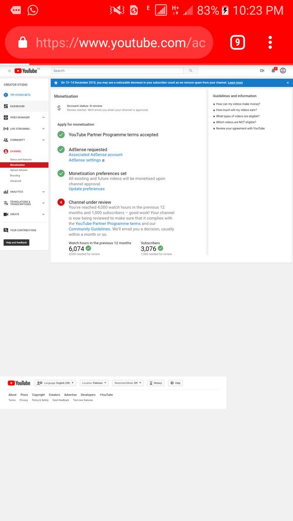Hello @TeamYouTube my channel is completed the 4k+ hours Watch time & 1k+ subscribe previous 30 days and still my channel monetization is not enabled please guids us. Channel Name_ Sulman Tech Channel Link_ https://www.youtube.com/channel/UCufUmvwDGsYbL1vgv9DUyPw … Thank Youpic.twitter.com/b5lgMzrPPT