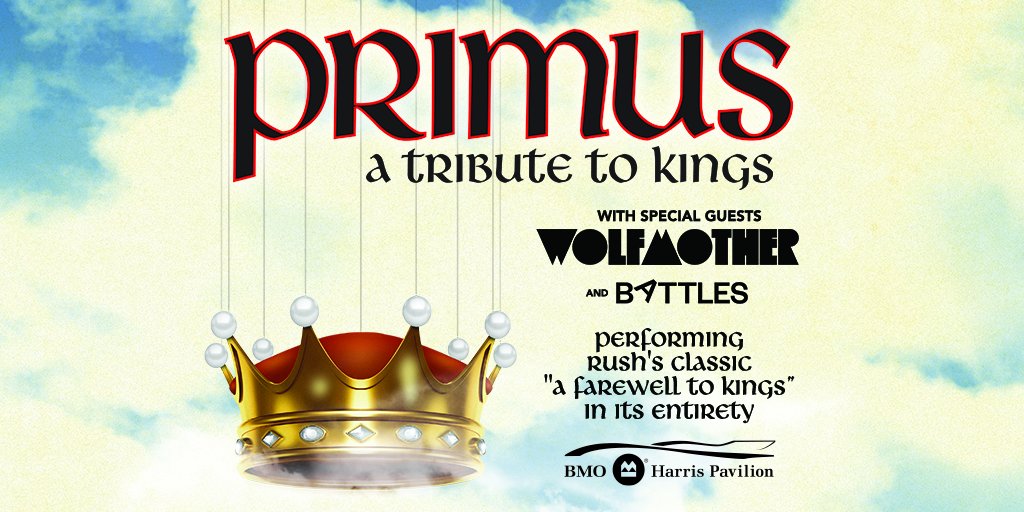 @primus with special guest@wolfmother and@BATTLES on July 7 at the BMO Harris Pavilion are on sale now! Get your tickets: https://www1.ticketmaster.com/primus-a-tribute-to-kings/event/0700584CE1594E98 …pic.twitter.com/JcZjKHfK1C