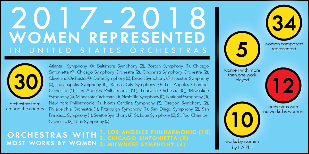 Nearly half of the top U.S. orchestras will perform no music composed by women next season. (Graphic: Catherine Baker Design)pic.twitter.com/6mazEKaPBZ