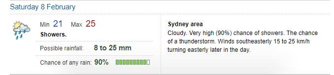 Sydney's forecast for Saturday... #bbl09#supercoachbblpic.twitter.com/H4ZUDpUhZW