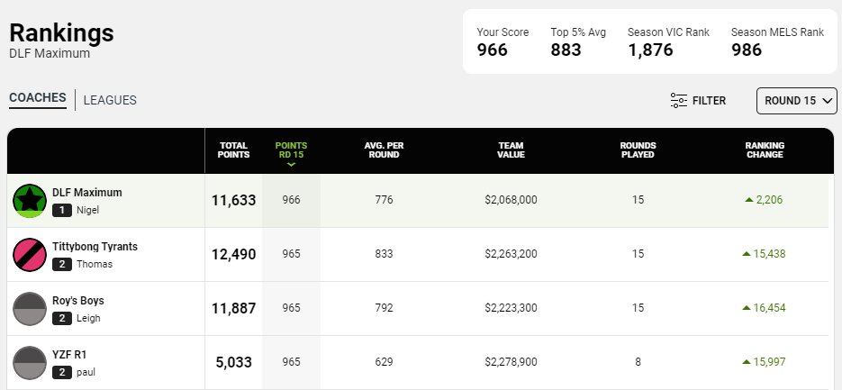 Fantastic last round, tough to find a point of difference with only 2 teams tonight. Nearly $200k left in the bank doesn’t feel right!