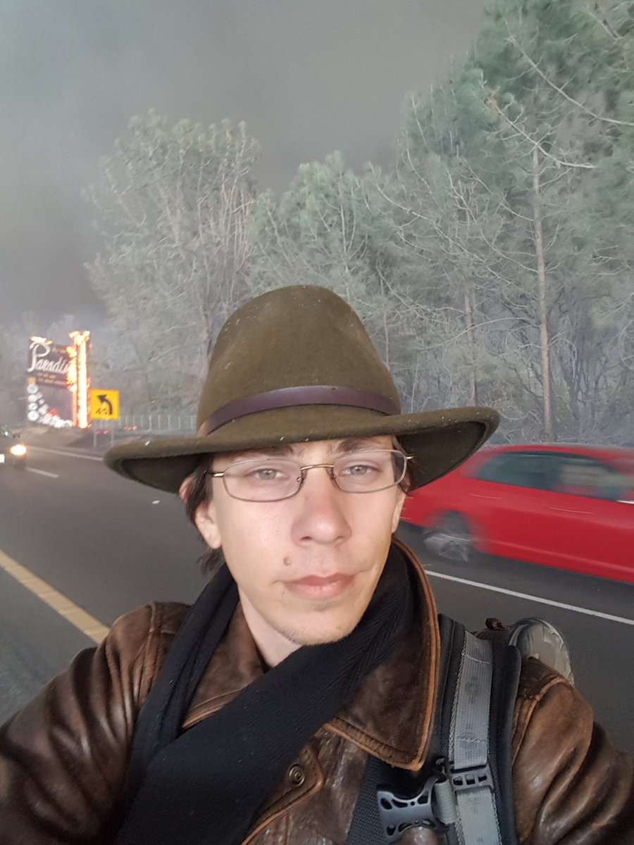 Had myself a heck of a day today. Managed to get out of quite the spot, and biking through the bumper to bumper double lanes traffic, and smoke so thick it was nighttime. Road lit by headlights and burning trees and homes. What a daypic.twitter.com/UNSoGX3nKN