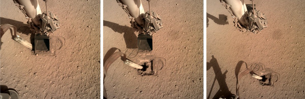 @NASAInSight lander has moved the scoop on the end of the robotic arm away from pressuring the heat probe mole...#Marspic.twitter.com/XIfGOT44vD