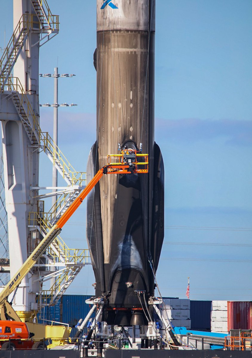 SpaceX booster 1067-3 being processed this evening after launching Türksat 5B on Dec 18th.